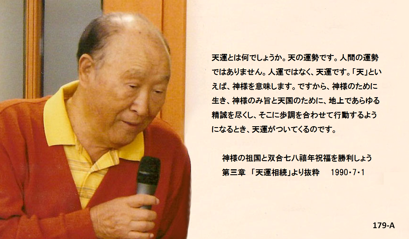 生涯、真の父母様に侍り、天の摂理とみ旨のために歩まれた神山威先生が、2016年12月12日に聖和されました。「毎日わずかな時間でもいいので、み言を訓読してください」という先生の遺志を受け継ぎ、これまで通りみ言を配信してまいります。
