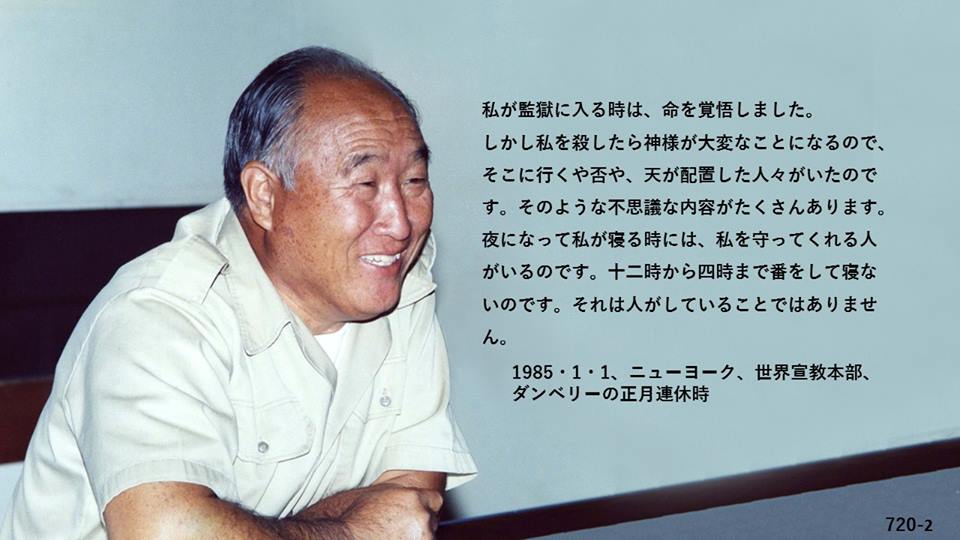 私が監獄に入っている時、アメリカの収容者は五十万人を超えていました。そして、そのすべての収容者が、「レバレンド・ムーンが自分と同じ所にいる」と自慢して自分の家に連絡したというのです。(笑われる)電話が道のわきにあるのですが、私がそこを通りかかるのを見ると、電話をしている人が「今、うちの妻に電話しているのですが、少しあいさつをしてくれませんか」と言ってきて、何度かあいさつもしました。(笑われる)