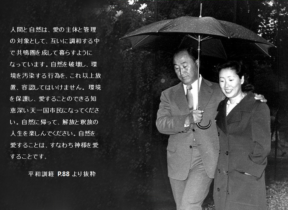環境を保護し、愛することのできる知恵深い天一国市民になってください。自然に帰って、解放と釈放の人生を楽しんでください。自然を愛することは、すなわち神様を愛することです。皆様の人生が自然と共鳴圏を成して生きるようになるとき、その中で人格完成の花を咲かせるようになるでしょう。その中で、真正な心情文化と芸術世界の花が咲き、創造本性を中心として、神様と人間、そして万物が一つに調和して暮らす創造本然のエデンの園となるでしょう。