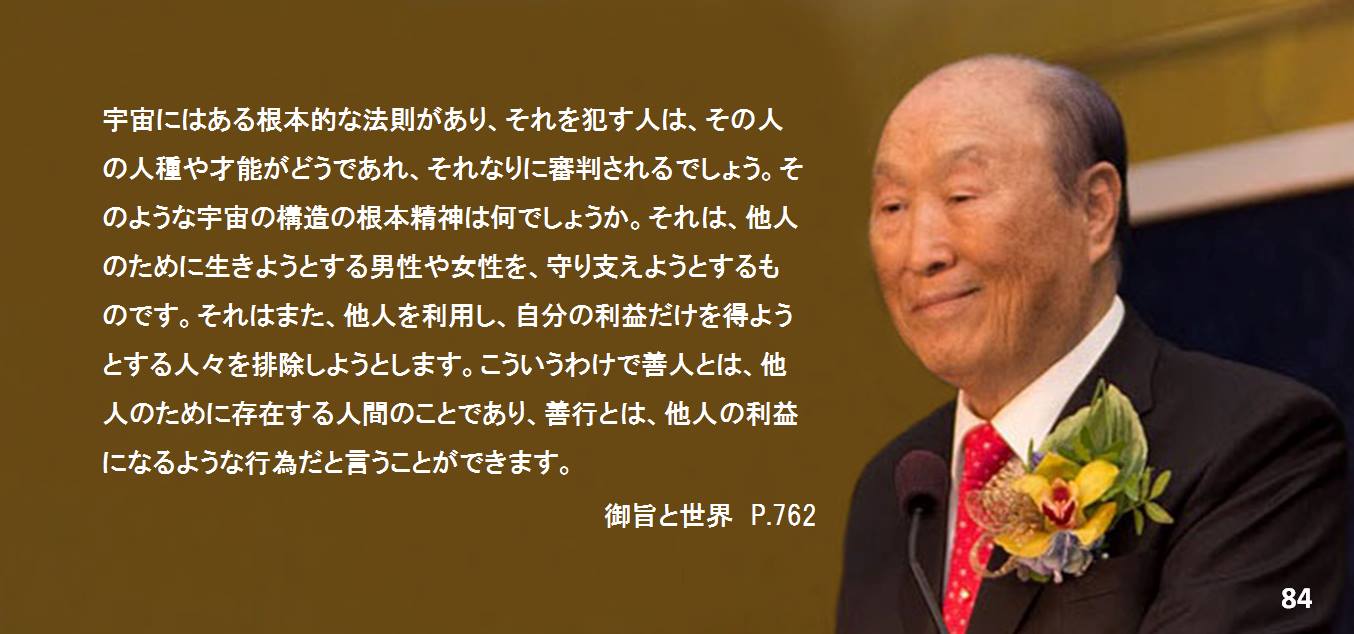 生涯、真の父母様に侍り、天の摂理とみ旨のために歩まれた神山威先生が、2016年12月12日に聖和されました。「毎日わずかな時間でもいいので、み言を訓読してください」という先生の遺志を受け継ぎ、これまで通りみ言を配信してまいります。