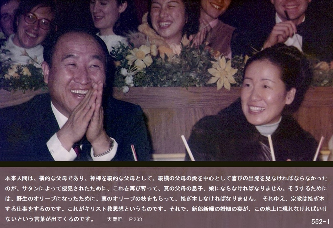 それゆえ、宗教は接ぎ木する仕事をするのです。これがキリスト教思想というものです。それで、新郎新婦の婚姻の宴が、この地上に現れなければいけないという言葉が出てくるのです。(五八・二一九)