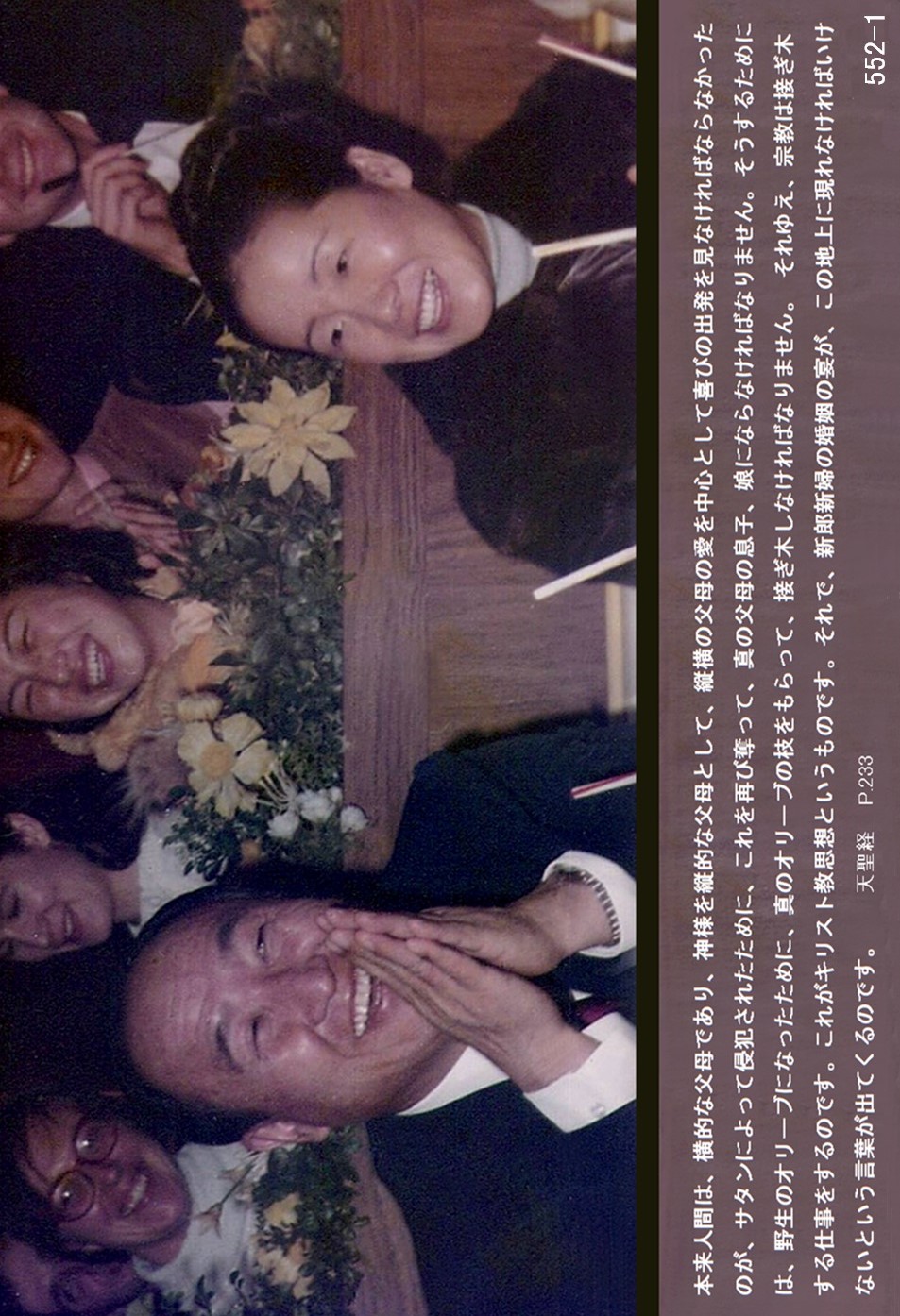 本来人間は、横的な父母であり、神様を縦的な父母として、縦横の父母の愛を中心として喜びの出発を見なければならなかったのが、サタンによって侵犯されたために、これを再び奪って、真の父母の息子、娘にならなければなりません。そうするためには、野生のオリーブになったために、真のオリーブの枝をもらって、接ぎ木しなければなりません。
