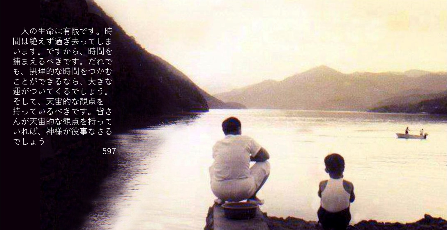 人の生命は有限です。時間は絶えず過ぎ去ってしまいます。ですから、時間を捕まえるべきです。だれでも、摂理的な時間をつかむことができるなら、大きな運がついてくるでしょう。そして、天宙的な観点を持っているべきです。皆さんが天宙的な観点を持っていれば、神様が役事なさるでしょう。(1985・7―19)
