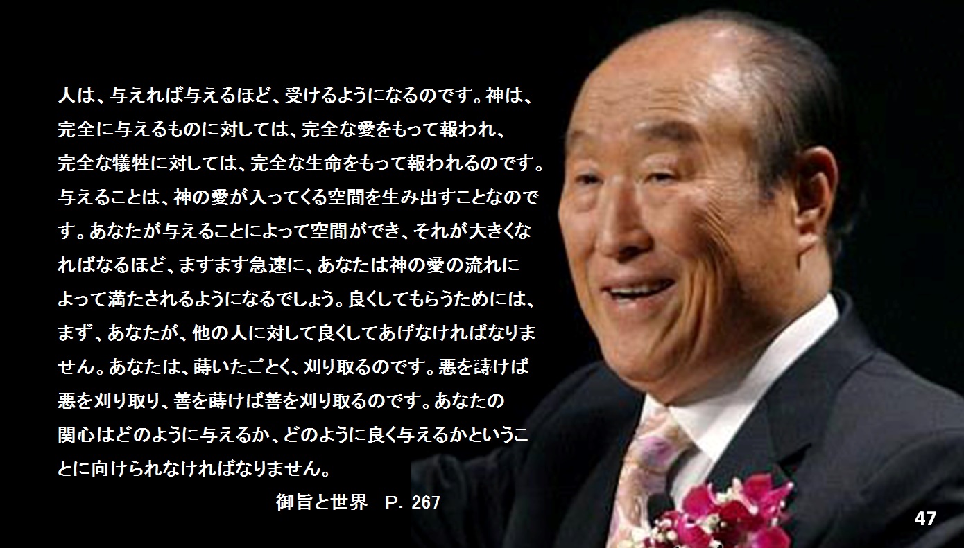 生涯、真の父母様に侍り、天の摂理とみ旨のために歩まれた神山威先生が、2016年12月12日に聖和されました。「毎日わずかな時間でもいいので、み言を訓読してください」という先生の遺志を受け継ぎ、これまで通りみ言を配信してまいります。