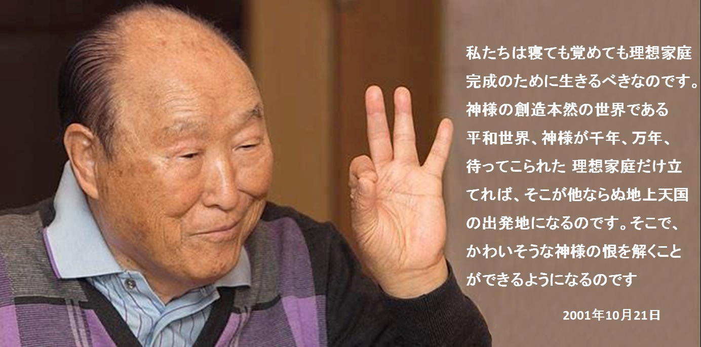 私たちは寝ても覚めても理想家庭完成のために生きるべきなのです。神様の創造本然の世界である平和世界、神様が千年、万年、待ってこられた理想家庭だけ立てれば、そこが他ならぬ地上天国の出発地になるのです。そこで、かわいそうな神様の恨を解くことができるようになるのです。