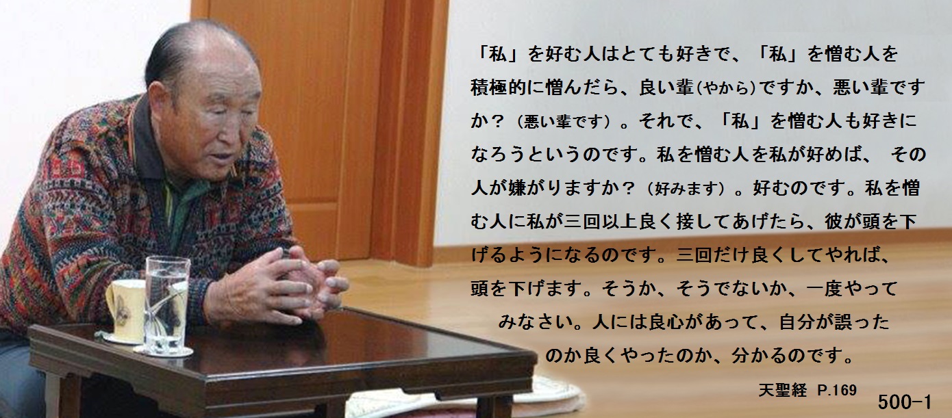 真なる方は好きな者だけ好むのではなく、自分を殺せという怨讐までも好まなければなりません。彼の前には、すべてを任せることができ、すべてを相談したくもあり、すべてを願うこともできる立場にある人であってこそ、真なる人です。分かりますか? もう真なる人が分かったでしょう?(はい!)