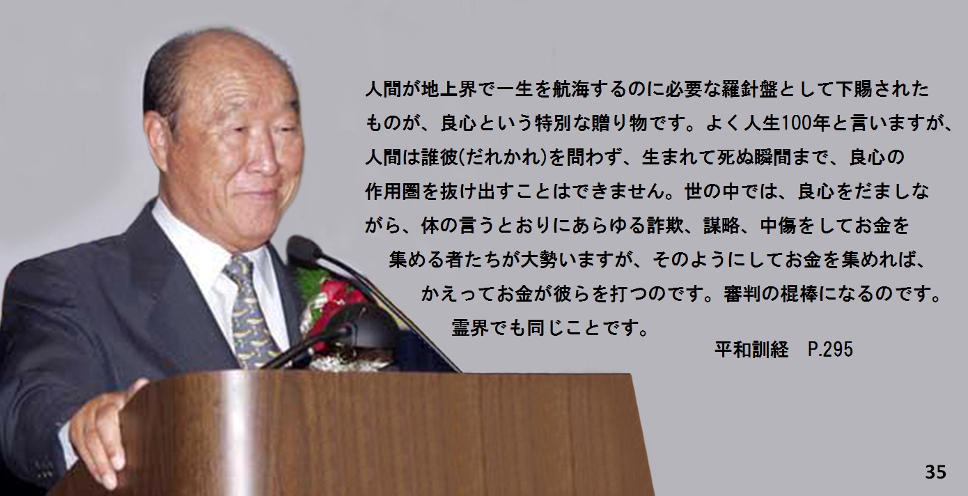 皆様、良心は、父母に優り、師に優ります。多くの人々がそのような価値を知らずにいます。体が良心を思いどおりにしているということです。堕落した世界、享楽の世界では、そうです。お金にばかり頼って暮らせば、享楽に流れていってしまいます。