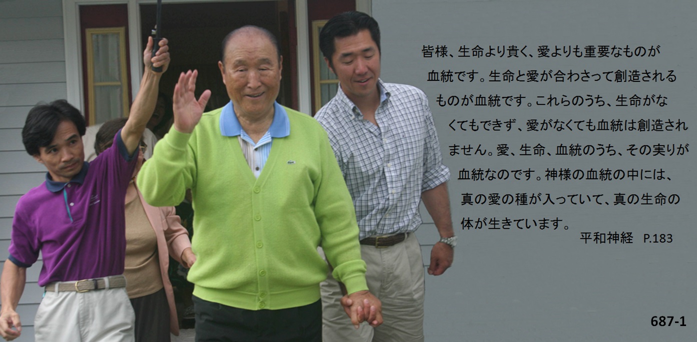皆様、血統の重要性は、いくら強調してもしすぎることはないということを、皆様も肝に銘じてください! 父子の間の関係こそ、あらゆる関係の中で最高、最上の関係だからです。神様の血統を伝授してあげ、永存させることのできる唯一の道は、正に父母と子女の間のモデルとしての血統関係しかないという事実を、はっきりと知らなければなりません。